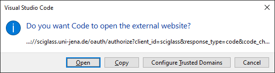button to open the authentication page in your browser. Log in with your SciGlass Next account, and